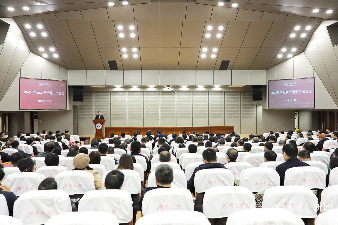 3月15日下午,学校召开2024年全面从严治党工作会议,深刻领悟习近平总书记关于党的自我革命的重要思想,深入学习贯彻二十届中央纪委三次全会精神,认真贯彻落实教育部党组和湖南省委有关会议精神和工作要求,回顾总结学校2023年全面从严治党工作情况,分析研判形势,部署安排2024年重点任务。校党委书记邓卫出席并讲话,校长段献忠出席会议,校党委副书记、纪委书记曹升元作了工作报告,校党委副书记孙炜主持会议,全体在校校领...