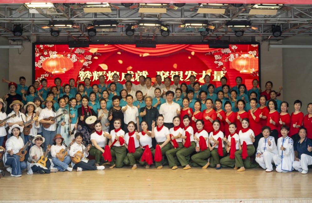 6月12日,“赞辉煌成就,聚银发力量”庆祝新中国成立75周年文艺汇报演出在湖南大学党委宣传部(新闻办公室)地址中心教职工活动中心二楼多功能厅举行。活动由湖南大学党委宣传部(新闻办公室)地址中心离退休处主办,湖南大学党委宣传部(新闻办公室)地址中心老年大学承办。文艺汇演上,老教工们自信从容、意气风发,展示了积极进取的精神面貌,用舞蹈、太极、京剧、时装模特走秀、合唱等表演形式,在汇演舞台上共同回忆青春年华,为祖国75载辉煌历程深情献礼。活动现场。来源:融媒体中心 离退休处学生记者:陶璇责任编辑:余楚