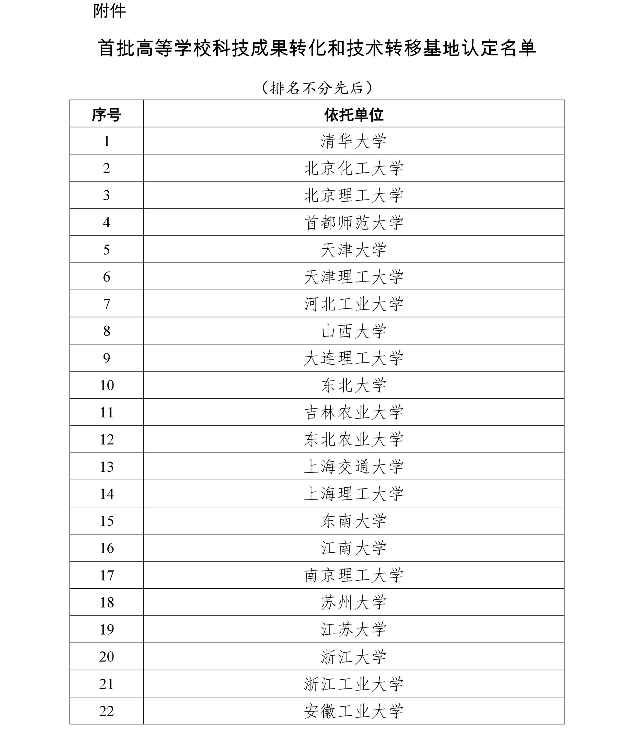 近日,教育部公布首批高等学校科技成果转化和技术转移基地认定名单,包括依托清华大学等22个中央所属高校的基地、首都师范大学等25个地方高校的基地入选。
