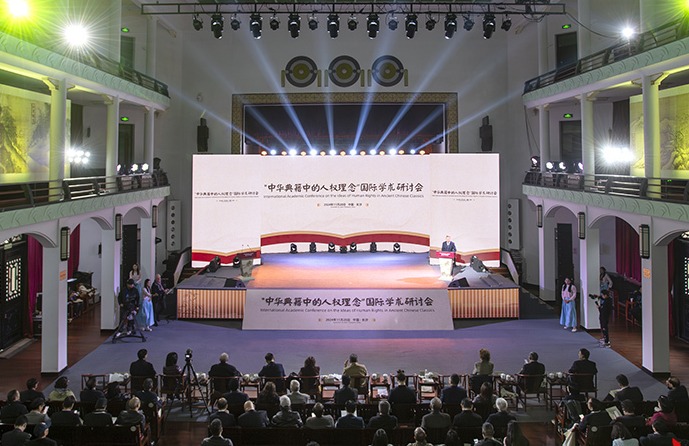 11月20日,“中华典籍中的人权理念”国际学术研讨会在湖南大学党委宣传部(新闻办公室)地址中心开幕。中外专家依托中华经典文献挖掘和阐发人权发展理念,促进文明交流互鉴,为世界人权事业发展贡献智慧和力量。全国政协民族和宗教委员会副主任、...