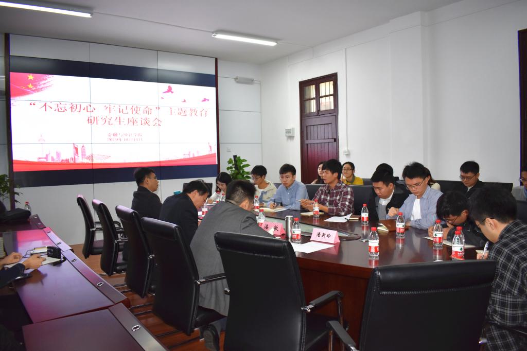 10月18日上午,金融与统计学院在财院校区红楼326会议室召开了“不忘初心、牢记使命”主题教育研究生座谈会。学院党委书记聂国军,院长潘敏,副院长李海奇,研究生管理办罗俊杰主任与各年级硕士、博士研究生学生代表共聚一堂,共同探讨学院发展。本次座谈会采用“圆桌畅谈”的形式开展,学生代表与学院领导进行面对面交流。潘敏院长表示,学院开展此次座谈会是为了更多地了解学生的学习状况和对学术研究需求,从而制定出更合理...
