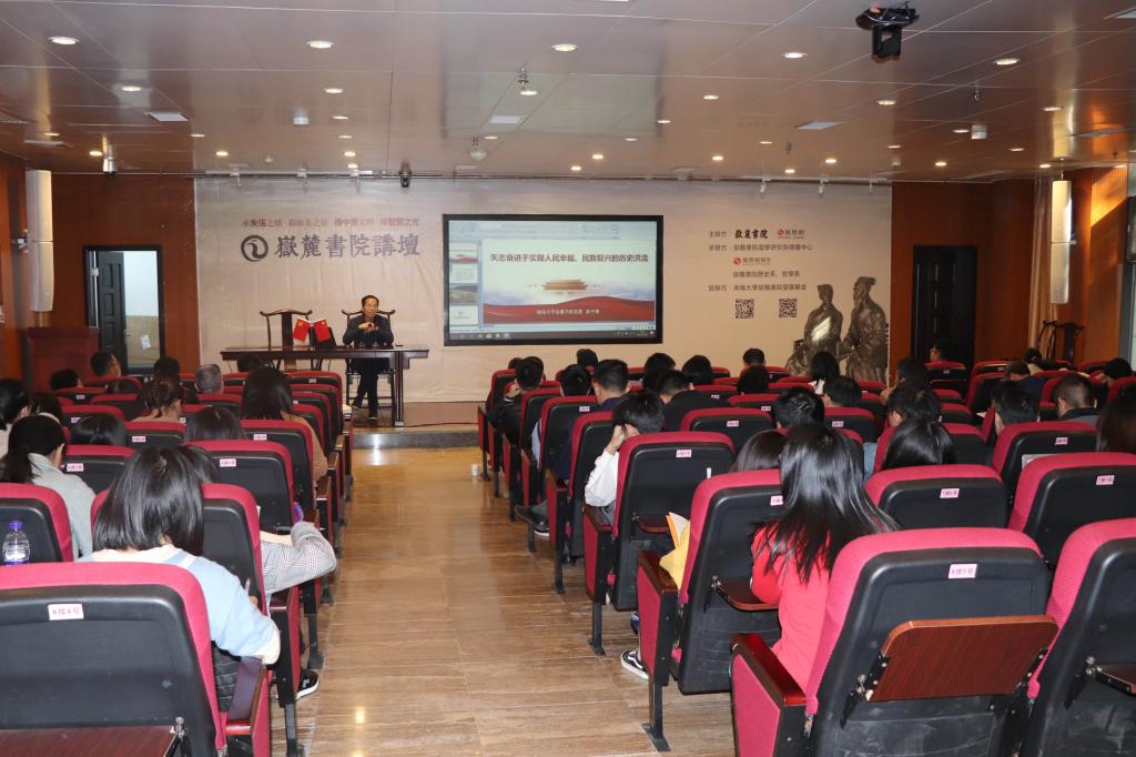 11月5日下午,岳麓书院党委书记陈宇翔以《矢志奋进于实现人民幸福、民族复兴的历史洪流》为题,为书院党员师生作“不忘初心、牢记使命”主题教育专题党课。教工支部、学生支部及离退休支部的100多名党员参加学习。专题党课现场。陈宇翔首先分享了他在壶口瀑布考察时录制的一段视频。黄河水在眼前奔腾不息、一往无前的场景,让他感慨万千。“我在想,那奔腾的黄河水不就像中国共产党成立近百年来领导中国革命与变革而推动的巨...