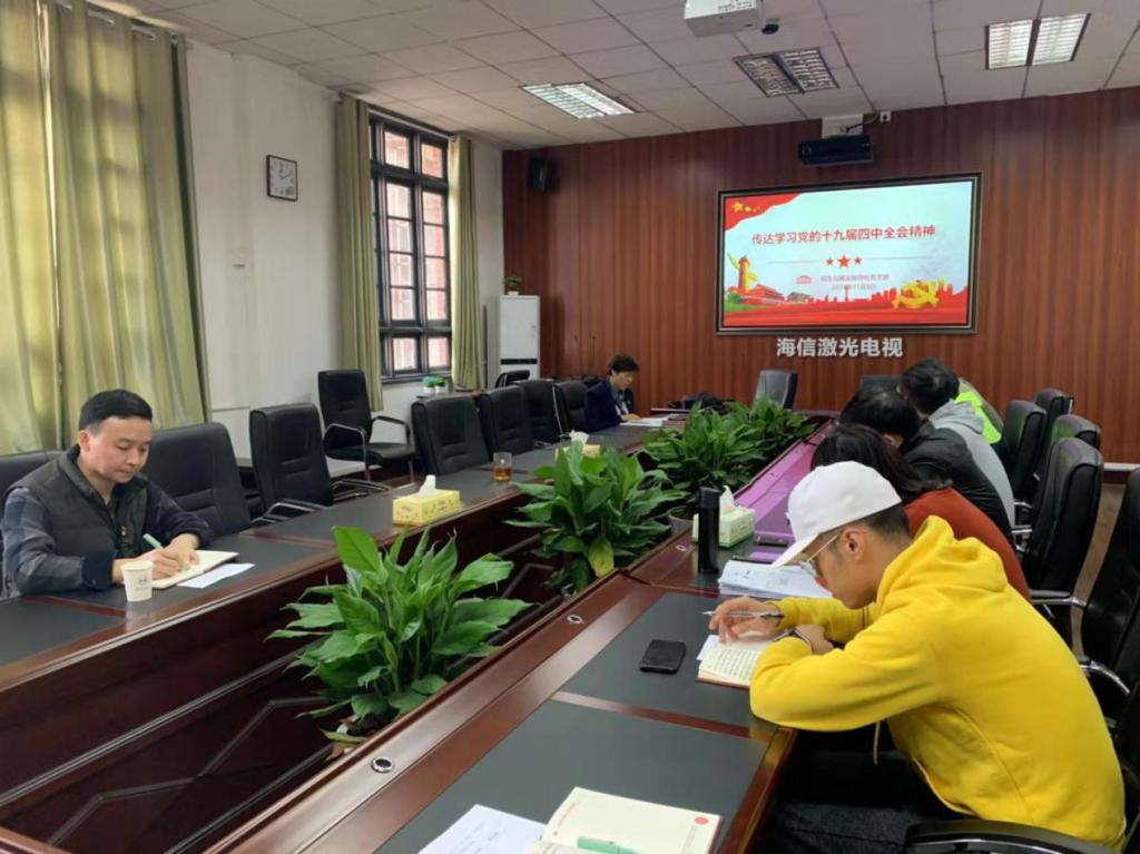 11月8日,招生与就业指导处党支部召开“不忘初心、牢记使命”主题教育第十二次集中学习,传达学习党的十九届四中全会精神。党支部书记陈义红主持会议。陈义红首先传达了党的十九届四中全会的基本情况和主要内容,指出全会是在庆祝新中国成立70周年之际,在实现中华民族伟大复兴的关键时期召开的一次十分重要的会议。全会审议通过的《中共中央关于坚持和完善中国特色社会主义制度、推进国家治理体系和治理能力现代化若干重大问题...