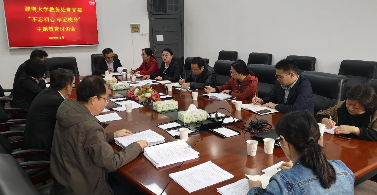 11月7日上午,段献忠校长,教务处领导班子成员、支部委员举行了“不忘初心、牢记使命”主题教育研讨会。本次集中研讨回顾和总结了学习教育和调查研究阶段工作和成果,结合教务处重点工作,谈问题、谈改进和落实。教务处支部在学校党委统一部署下,结合“三会一课”要求和主题党日活动,采取自学与集中学、线上学与线下学相结合的方式组织党员深入学习习近平新时代中国特色社会主义思想和习近平关于教育的重要论述。教务处班子...