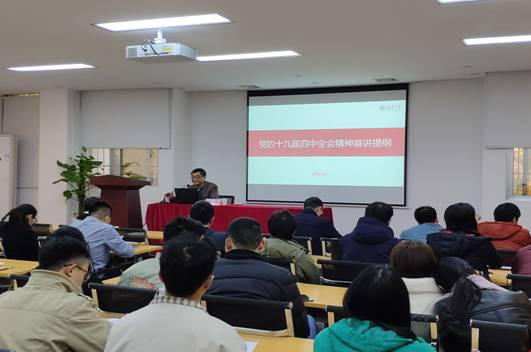 12月10日,学校党委常委、组织部部长孙炜在生物学院108报告厅作十九届四中全会精神专题宣讲,学院领导班子、全体党员和部分师生参加此次宣讲会。孙炜部长作十九届四中全会精神专题宣讲宣讲会上,孙炜从党的十九届四中全会精神实质出发,概述了《决定》的主要内容,对《决定》提出的总体要求、总体目标和重点任务进行了系统解读,深入阐释了党的十九届四中全会的重大意义。孙炜强调,要充分认识坚持和完善中国特色社会主义制度推...