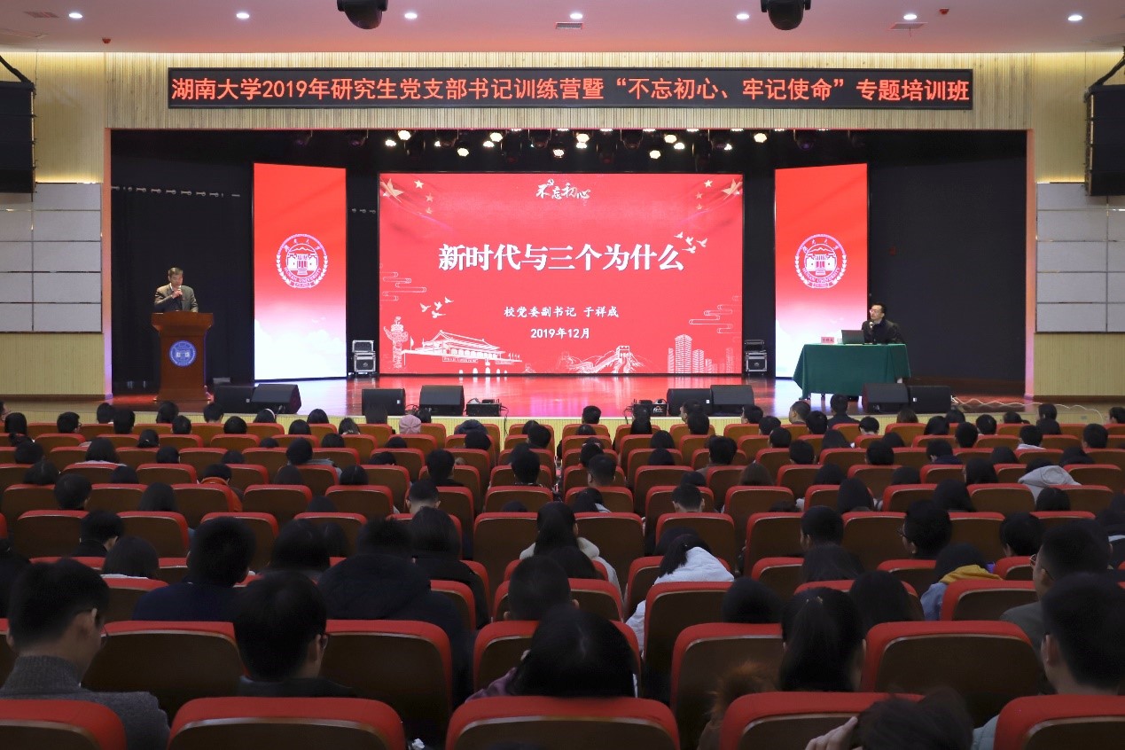 会议现场。12月7日上午,校党委副书记于祥成以“新时代与三个为什么”为题,为研究生党支部书记训练营暨“不忘初心、牢记使命”专题培训班讲党课。全校研究生党支部书记、研究生党建骨干、校院两级研究生干部和组织部(党校)、校团委负责人参加会议。研工部部长徐军主持会议。于祥成讲党课。于祥成结合自己学习习近平新时代中国特色社会主义思想、党的十九届四中全会精神体会,提出中国特色社会主义能够进入新时代,是因为有一...