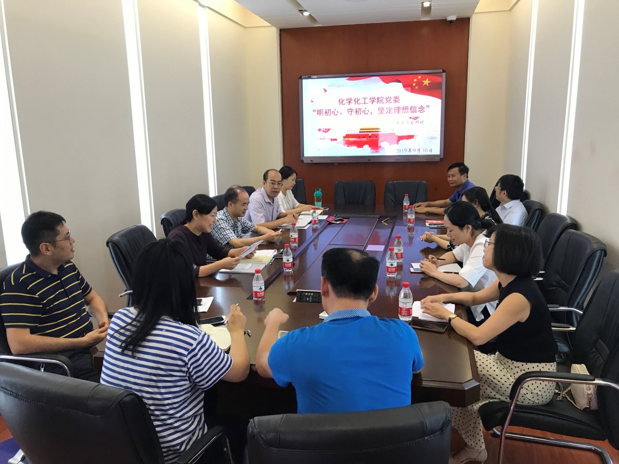 9月30日上午,化学化工学院两级理论学习中心组开展“明初心、守初心,坚定理想信念”主题学习研讨,进行2019年第十一次集中学习。院党委书记王玉枝教授主持,学校主题教育第一督查指导组成员、校教育舆情研究中...