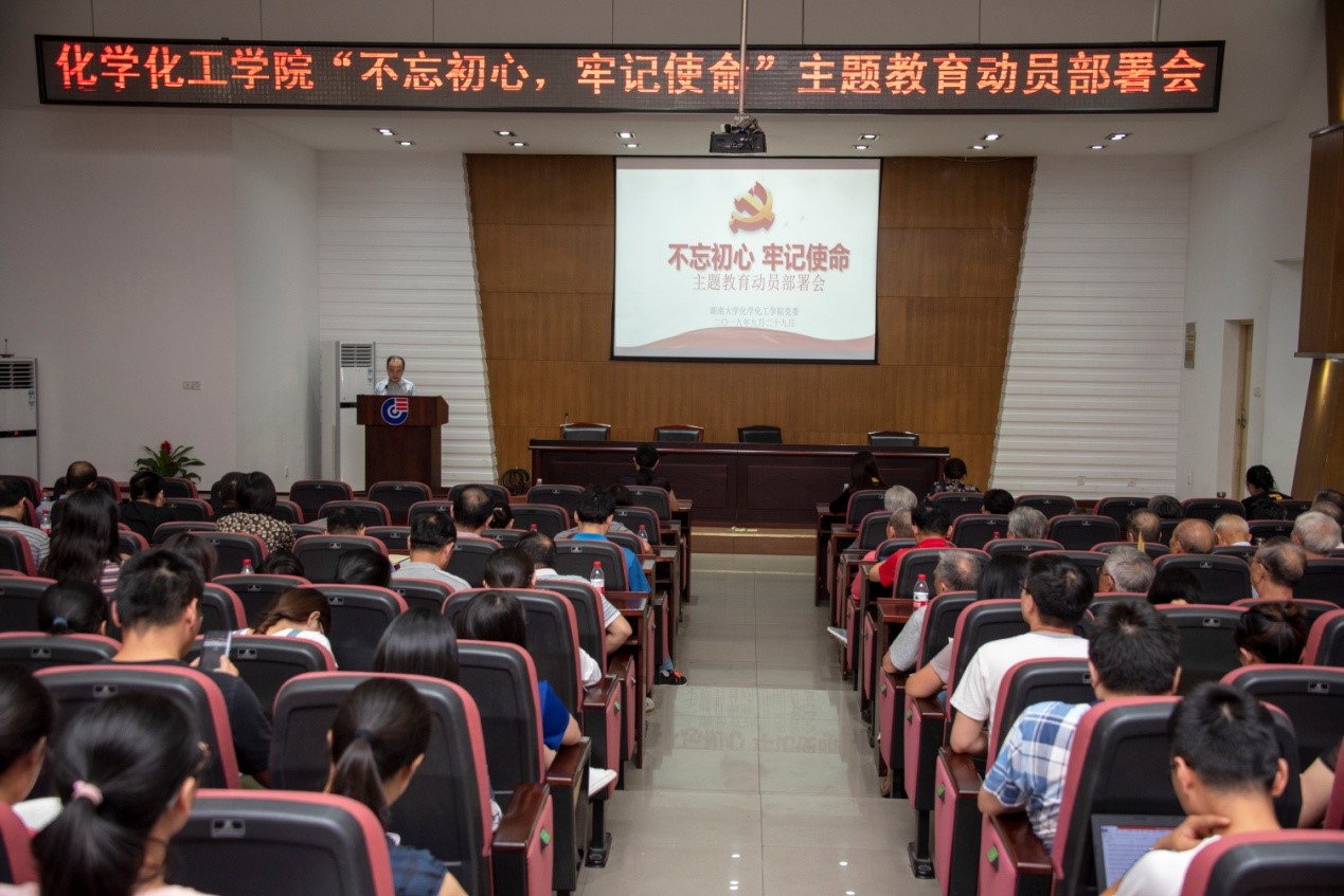 9月29日下午,化学化工学院在新化工楼D区报告厅召开了“不忘初心、牢记使命”主题教育动员部署会,对学院主题教育进行了全面动员和具体部署。学院党委书记王玉枝同志作了动员部署讲话,学校主题教育第一督查指导组成员、校团委书记彭嘉芬同志出席会议并讲话,学院院长张晓兵同志主持会议。学院领导班子成员、党委委员、全体教工党员、离退休党支部部部分党员和学生党支部书记参加会议。王玉枝同志作了动员讲话,传达了学校 “不...