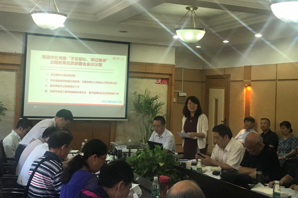 9月27日上午,离退休处党委召开“不忘初心、牢记使命”主题教育动员部署会。学校“不忘初心、牢记使命”主题教育督查指导组第五组组员黄克勇主任、联络员黄张伟老师应邀出席会议,离退休处党委、纪委委员,全体离退休党支部书记、党总支书记,离退休处全体在职党员同志等60余人参加会议。离退休处党委副书记曾翠萍主持会议。离退休处处长刘玉堂就我处党委开展“不忘初心、牢记使命”主题教育作动员讲话。他提出,离退休处党委在...