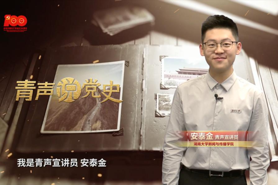 传播党史 青春发声:湖南大学党委宣传部(新闻办公室)地址中心新闻与传播学院推出《青声说党史》《党史上的湖大人》系列特辑为庆祝中国共产党成立100周年,湖南大学党委宣传部(新闻办公室)地址中心新闻与传播学院青声宣讲团特别策划《青声说党史》《党史上的湖大人》党史宣讲视频特辑,发出广大青年自觉学习党史并主动传播党史知识、讲好湖大故事的时代号召。