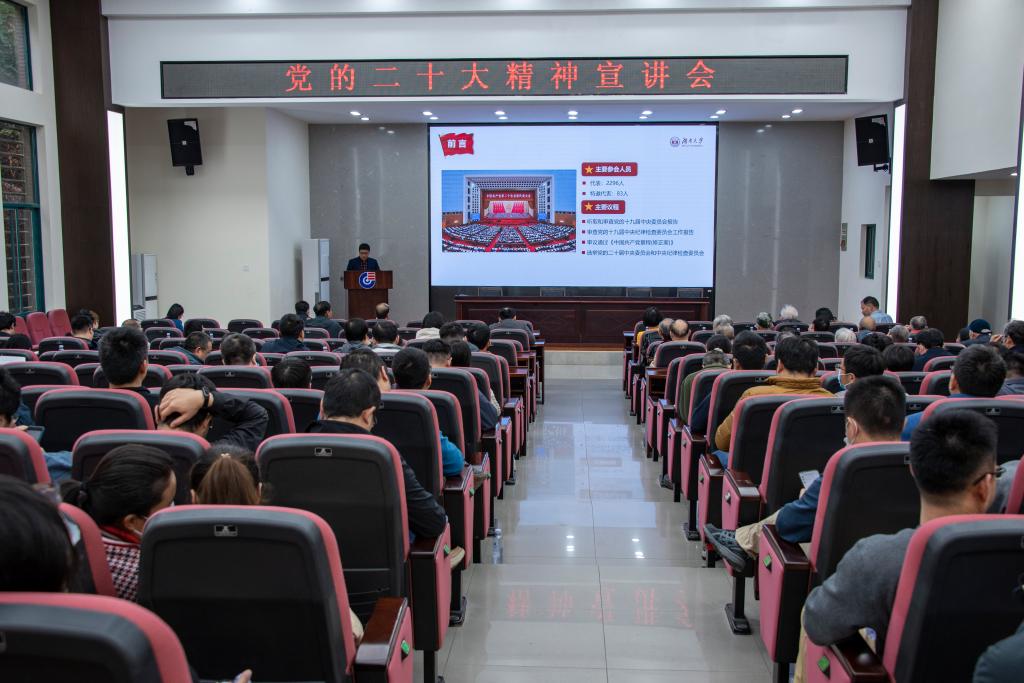 11月20日上午,青年学生学习党的二十大精神专题辅导报告会在南校区大礼堂举行,党的二十大代表、校党委书记邓卫作专题辅导报告。副校长汪卫斌主持。500名青年学生代表现场聆听。邓卫围绕“为何学习二十大精神”“如何学习二十大精神”“二十大精神重点解读”“如何践行二十大精神”四个方面进行专题宣讲。邓卫表示,党的二十大报告,是一份政治宣言书、理论教科书和治理白皮书。青年学生要认真学习贯彻党的二十大精神,既要学全...